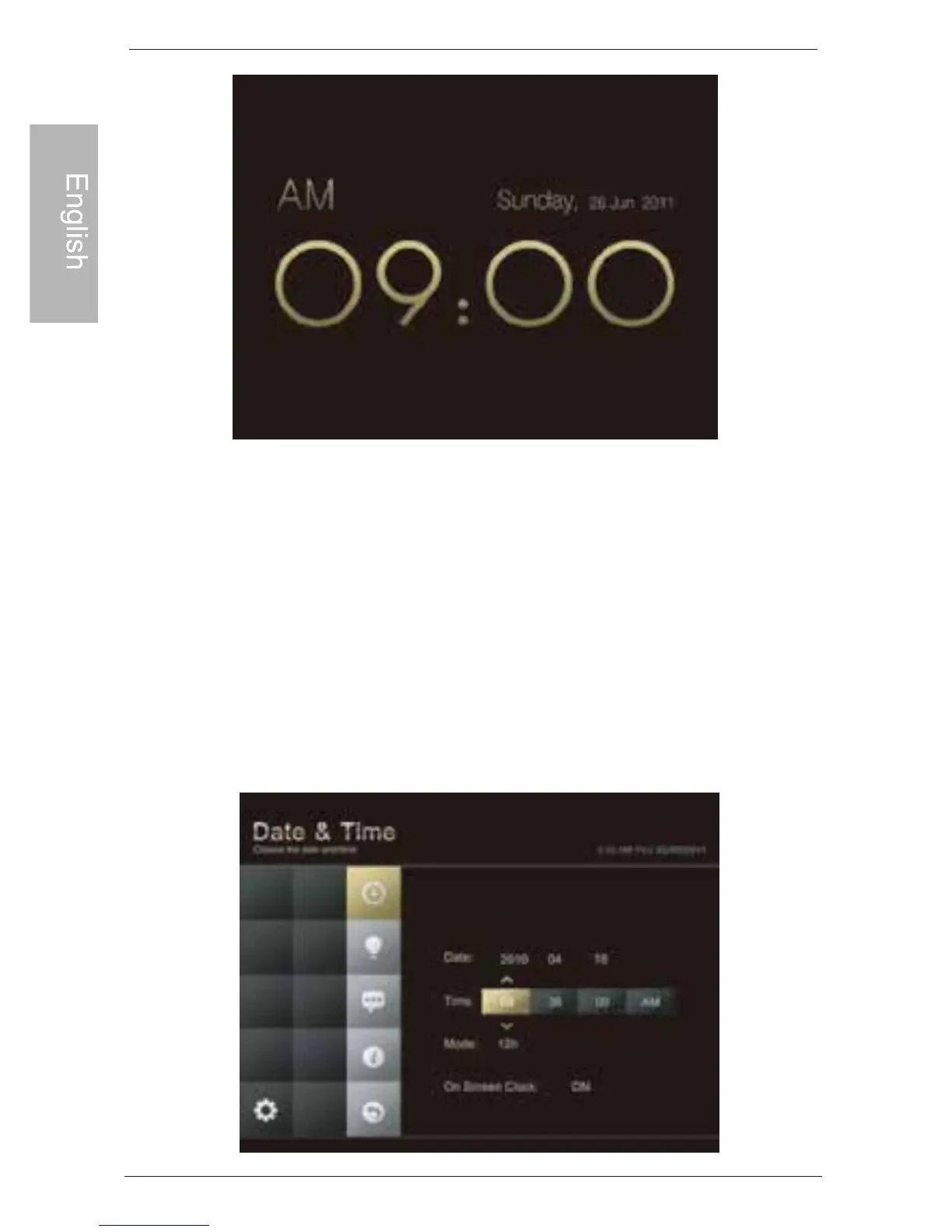 2. Scroll to toggle among Date & Time, Brightness, Language,