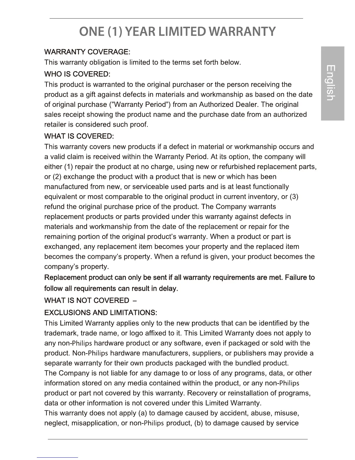 Philips ONE (1) YEAR LIMITED WARRANTY