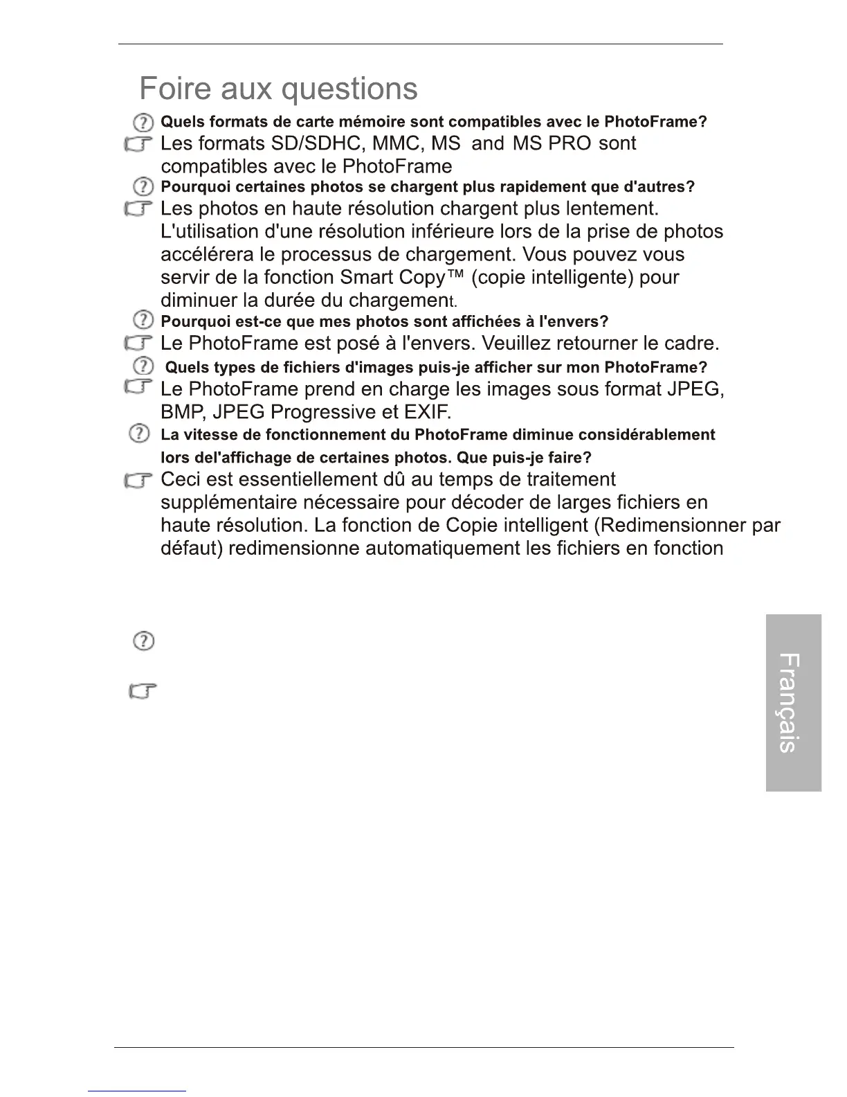 If Si le PhotoFrame se fige, vous n'avez qu'à le redémarrer en