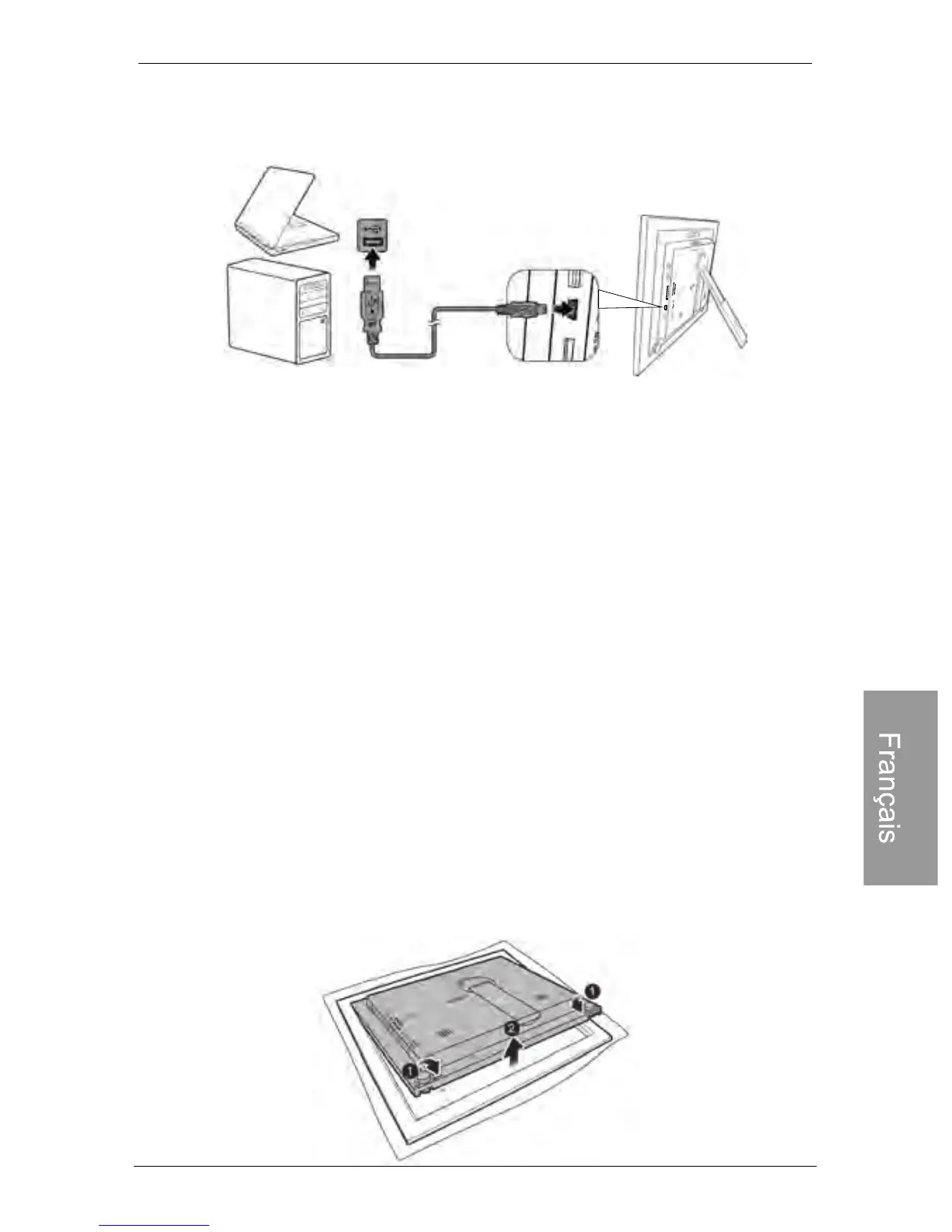 1. Sur la surface plane d'une table, posez le PhotoFrame sur une
