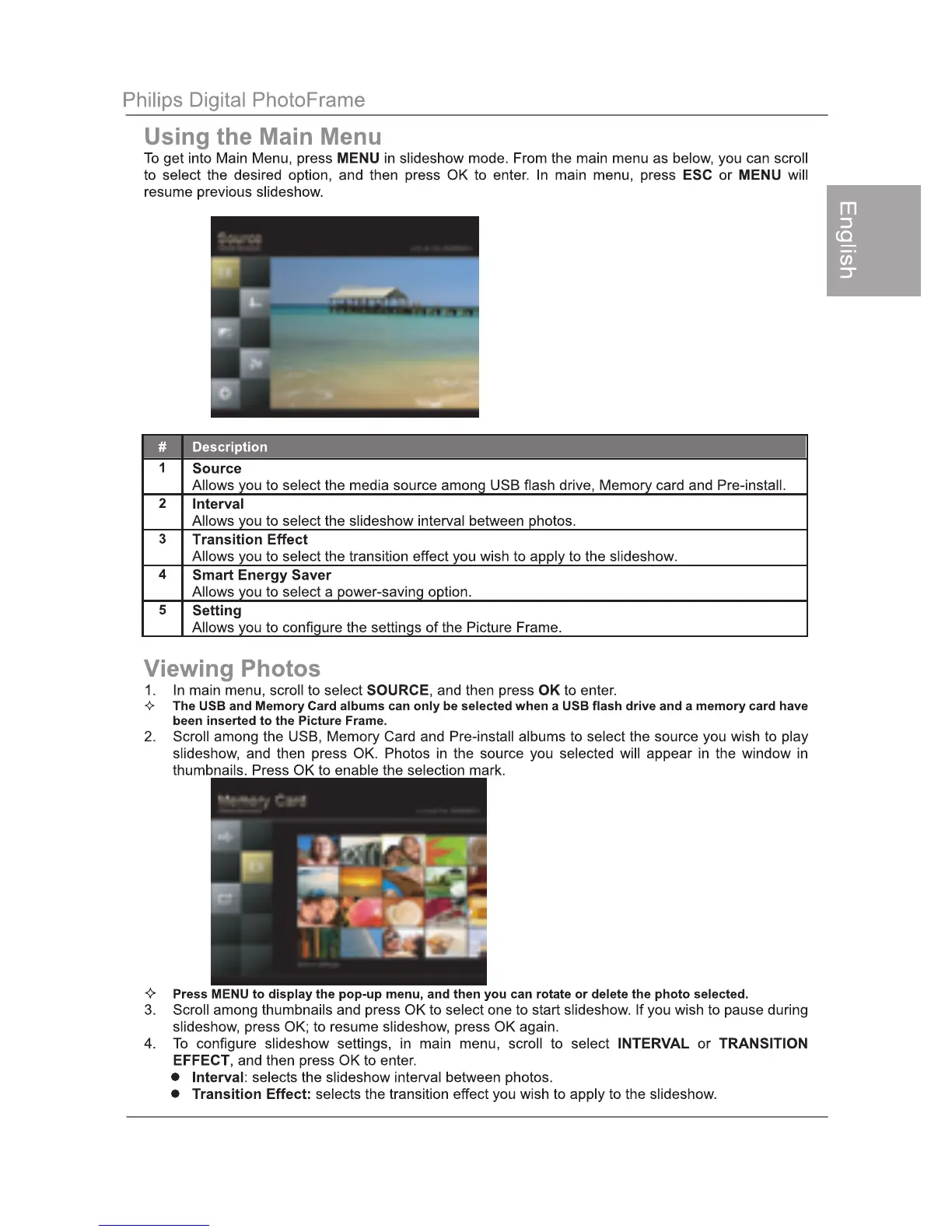 Philips SPF3483/G7 - Navigating the Main Menu and Viewing Photos