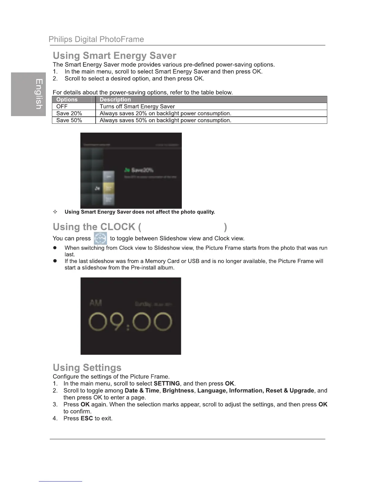 Philips SPF3483/G7 - Smart Energy Saver Functionality; Clock and EZ Access Functionality; Configuring System Settings