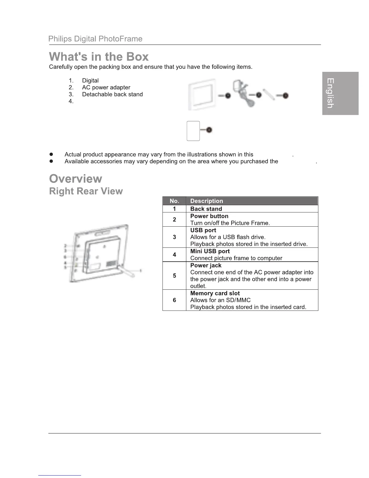 Philips SPF3483/G7 - Whats in the Box; Product Overview and Identification; Right Rear View Identification