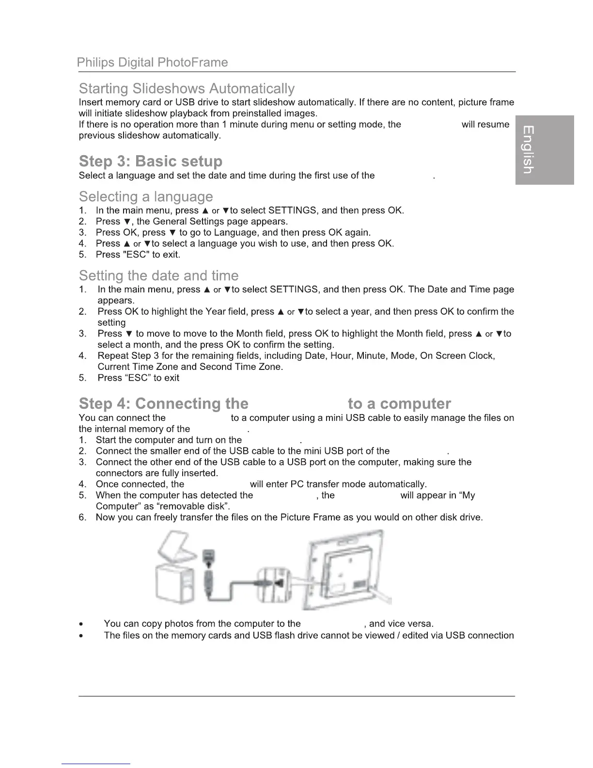 Philips SPF3483/G7 - Initial Device Setup; Connecting to a Computer via USB