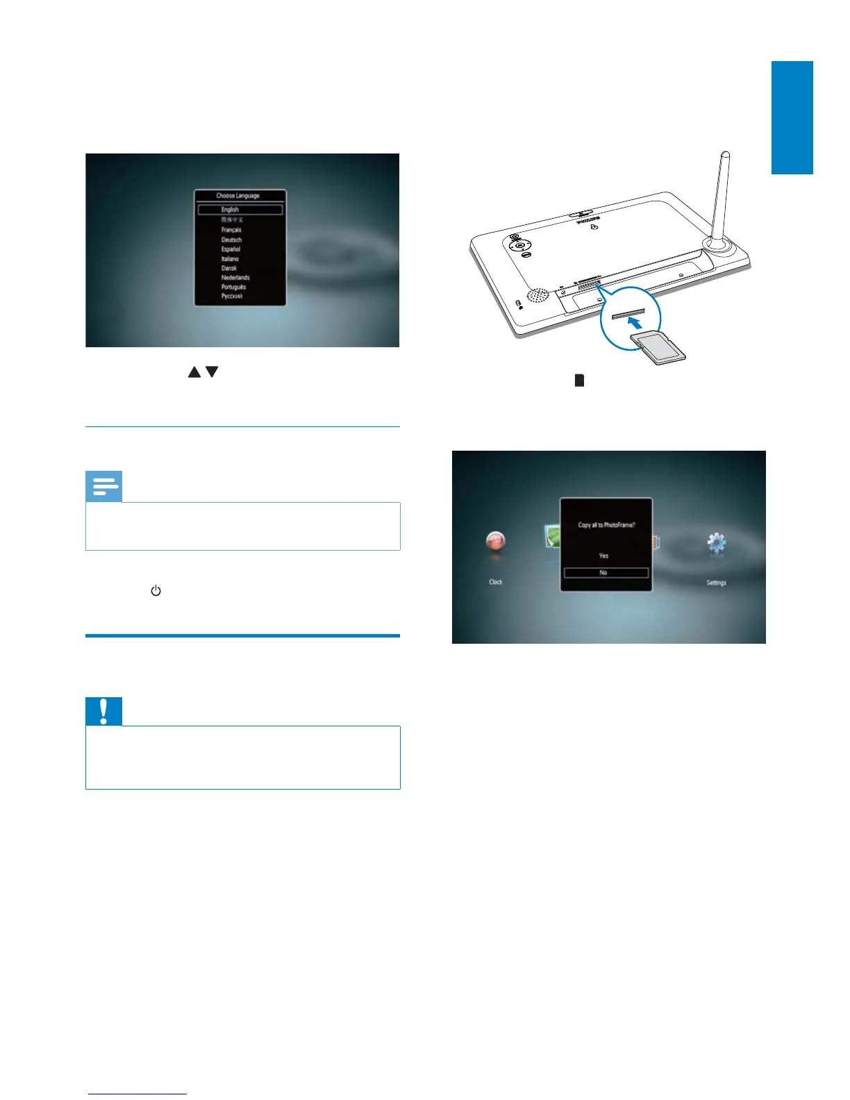 To turn off the PhotoFrame, press and •