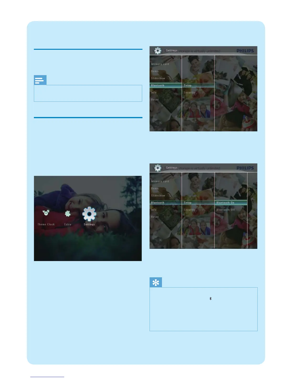 With the PhotoFrame, you can set up Bluetooth