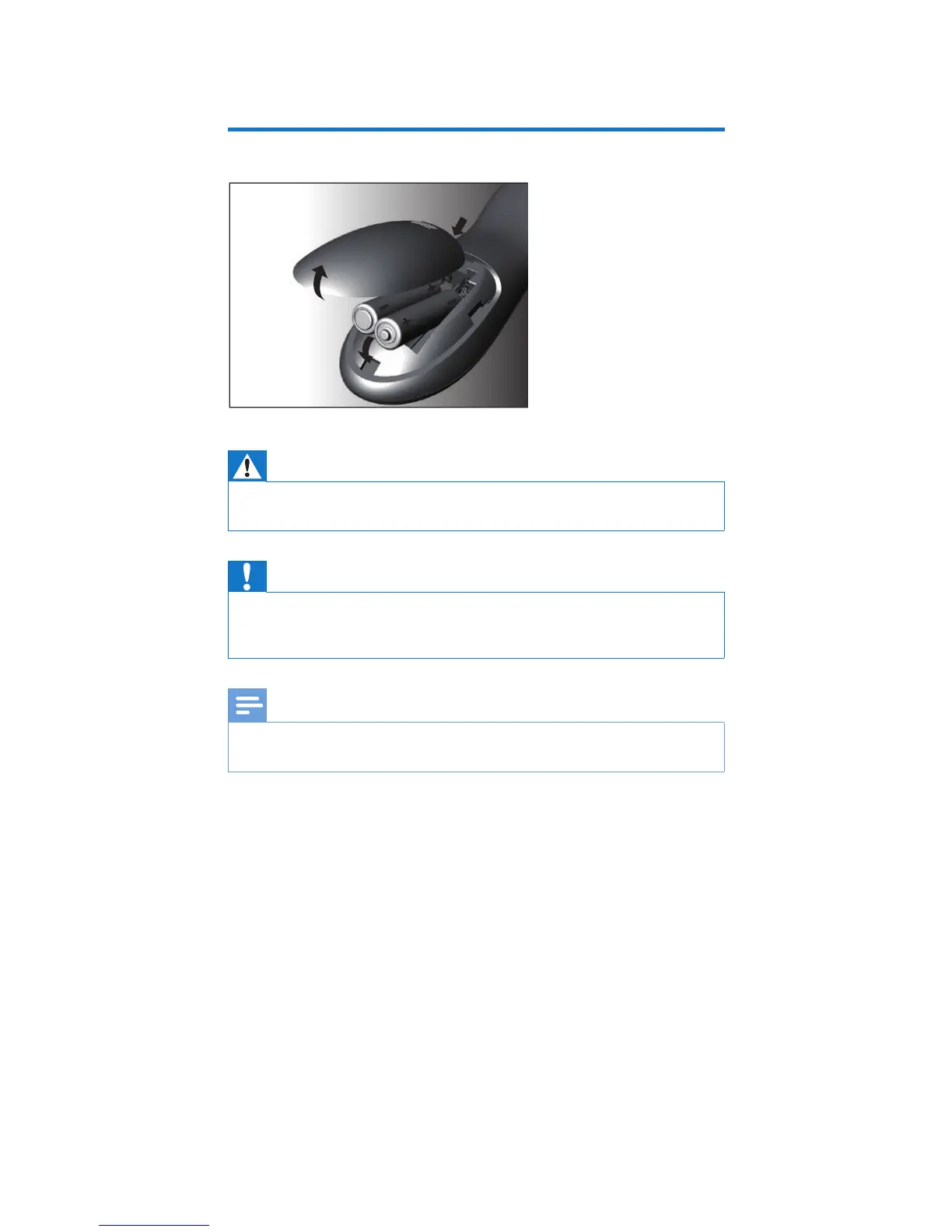 • Risk of decreased battery life! Never mix different brands or types of batteries.