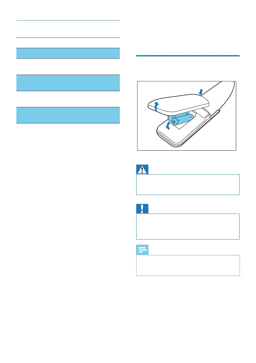 • Risk of explosion! Keep batteries away from heat,