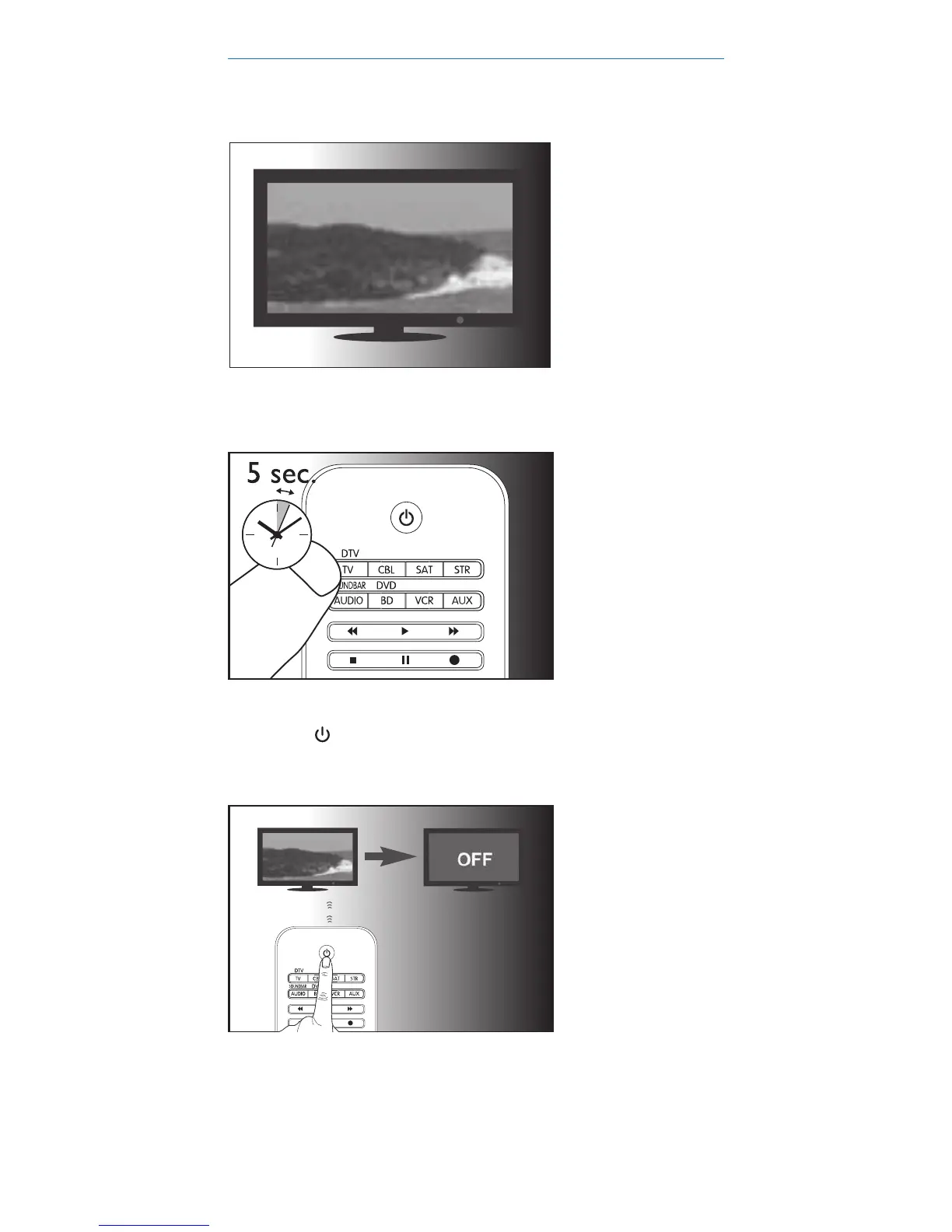 Press and hold the device selection button (e.g. TV) for 5 seconds