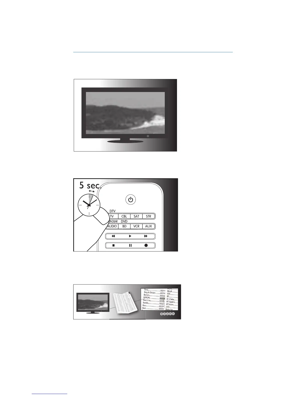 Press and hold the device selection button (e.g. TV) for 5 seconds