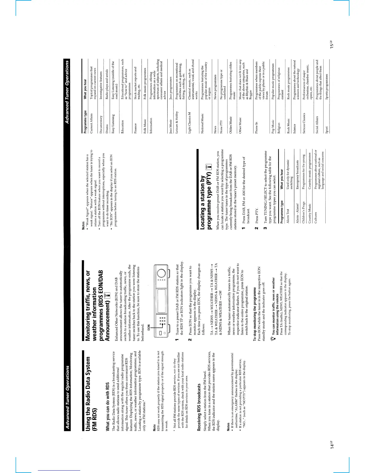 Philips ST-D777ES - Radio Data System (RDS) Features; RDS EON;DAB Announcement Monitoring; Locating Stations by Programme Type (PTY)