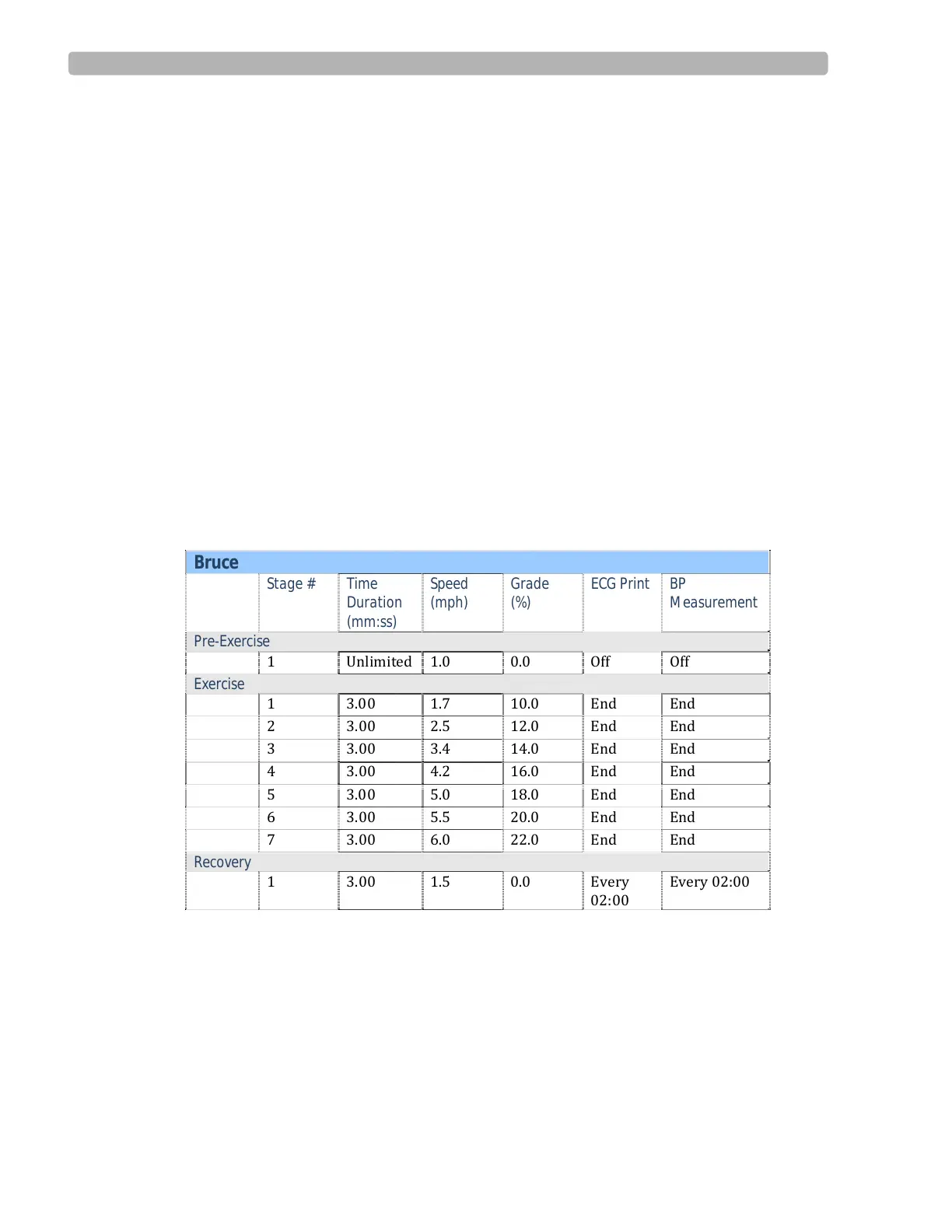 A stage change occurs every 3 minutes with an increase in treadmill speed and grade.