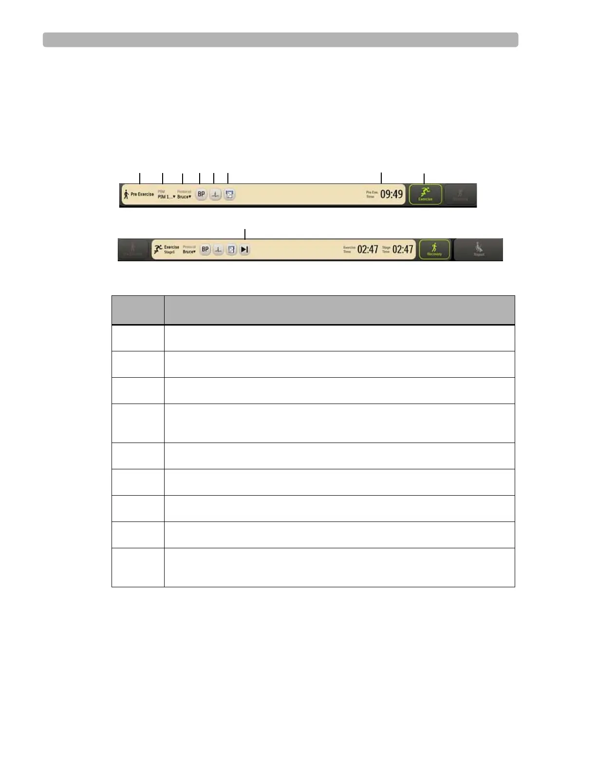 Current exercise phase (Pre Exercise, Exercise, Recovery, Report)