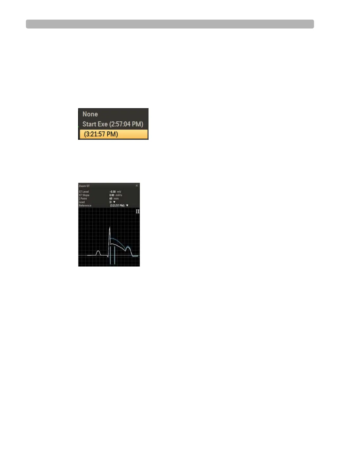 The current zoomed ECG appears in white; the earlier or baseline zoomed ECG appears in
