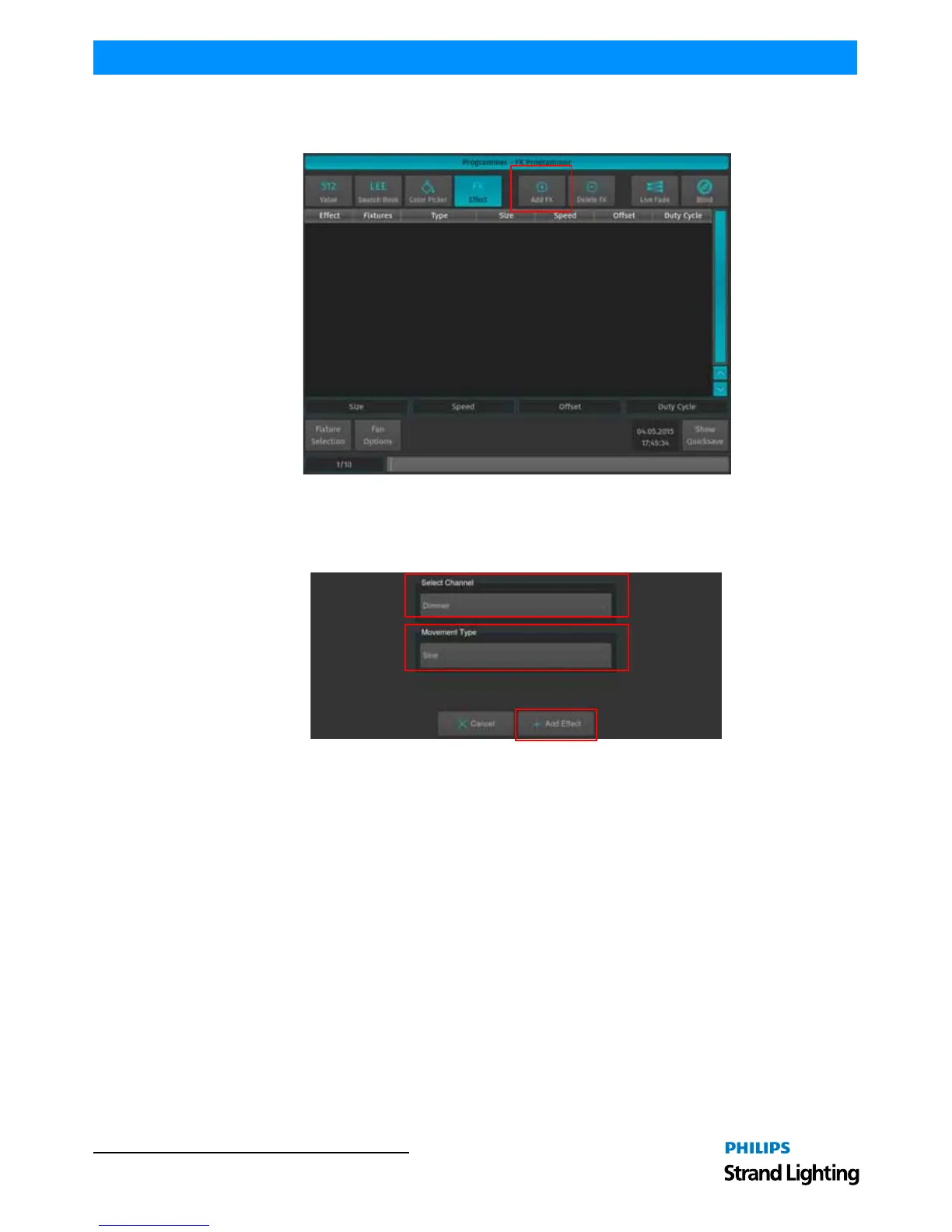 the effect type and parameter shown in the first column of the Effects Programmer. In order to modify the dimmer