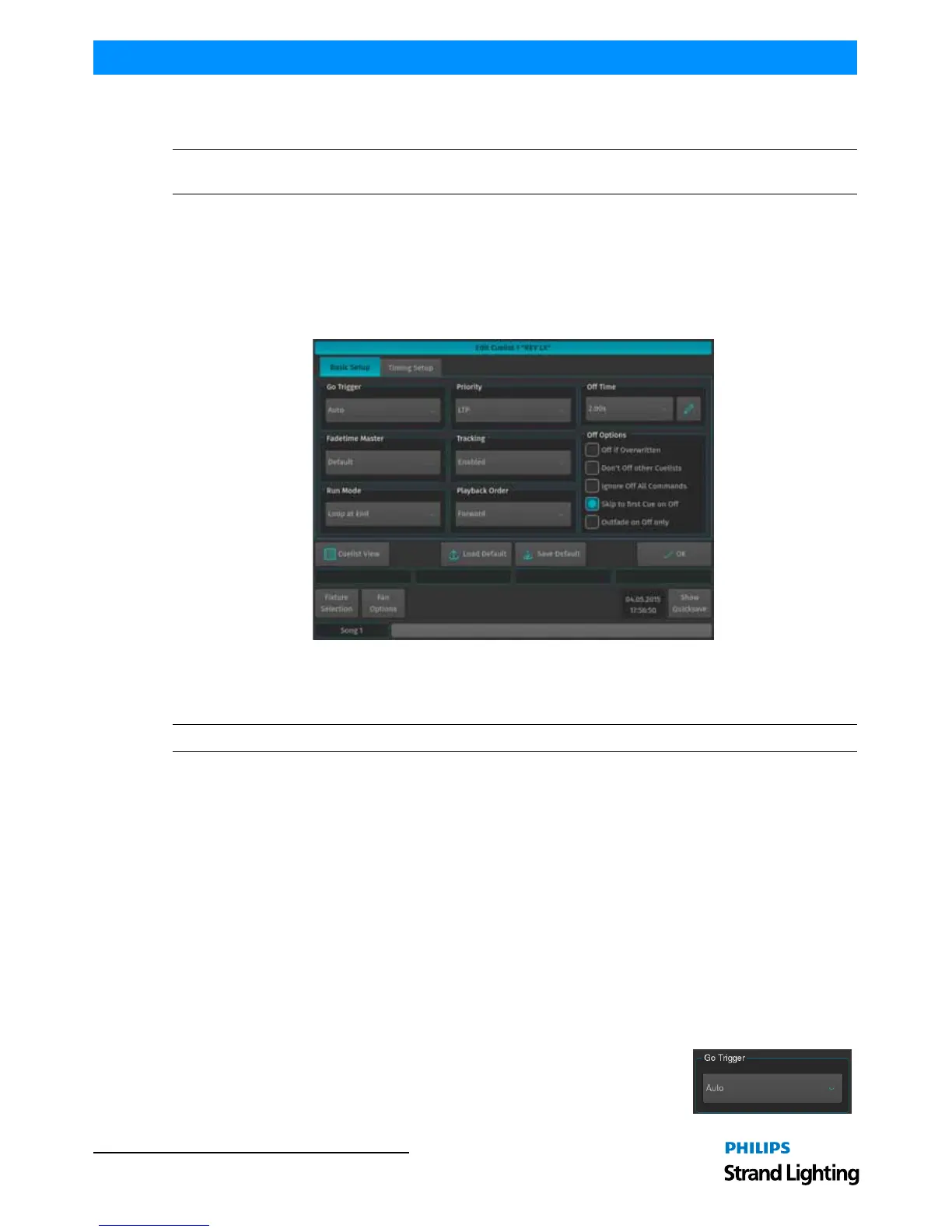 The Go Trigger field defines how a Cuelist will be run. The default option is Auto.