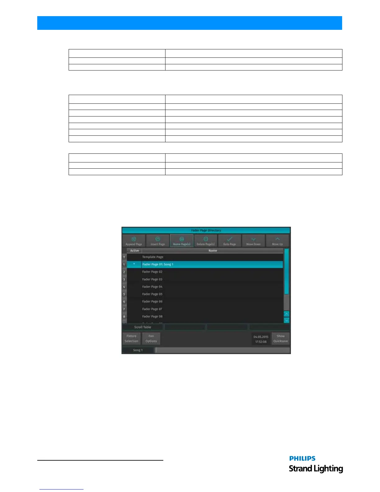 later time. Fader Pages do not store levels of the faders and cuelist states.