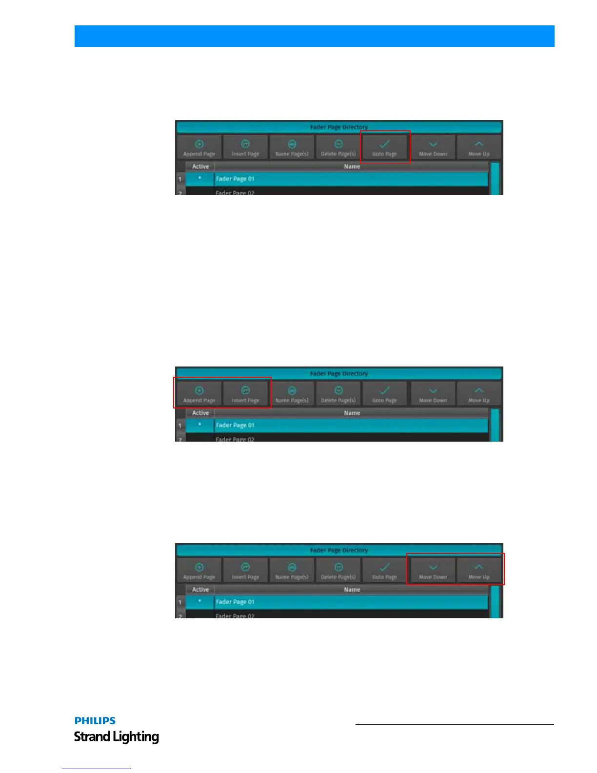 of the console or from within the Fader Page Directory window by selecting the page you would like to change to and