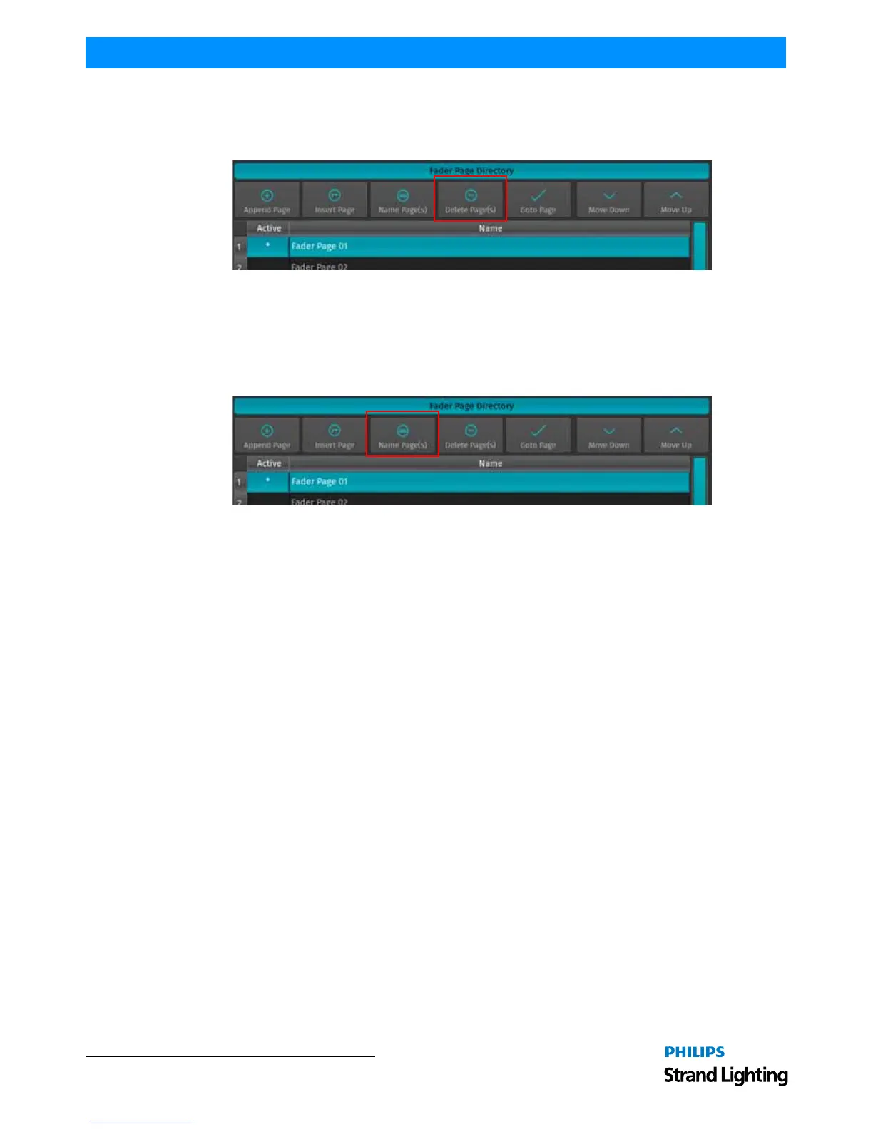 Page Names are shown within the Fader Page Directory, the Fader Page indicator next to the command line and on