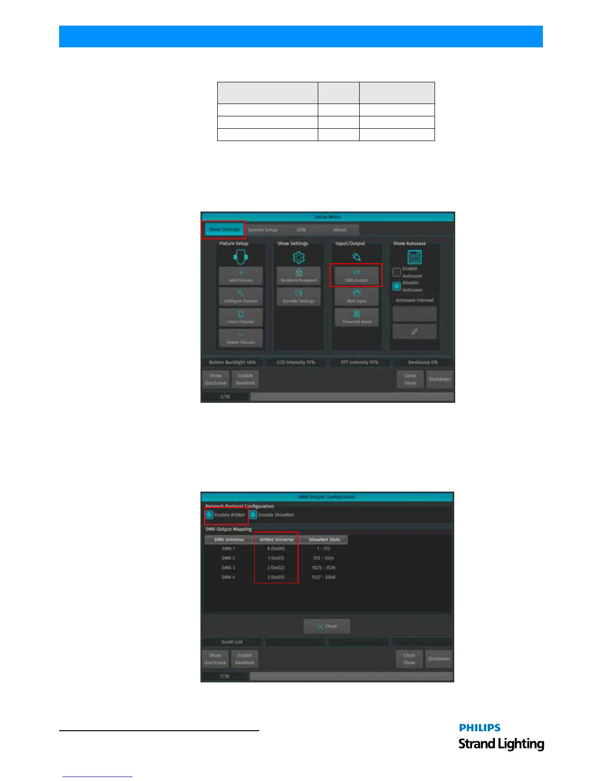Figure 244: Setup Menu - Show Settings / DMX Output