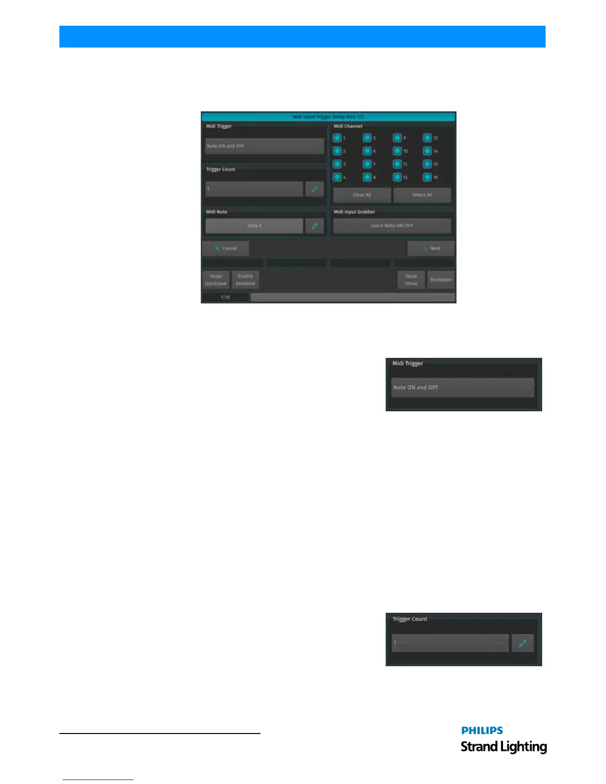 The MIDI Input Trigger wizard is used to define which MIDI Note, Program or Control Change on which channel the