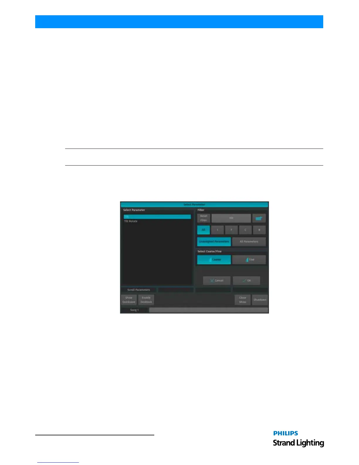 Note: If you select two parameter cells and press the [SET] key, the console will automatically assign the coarse