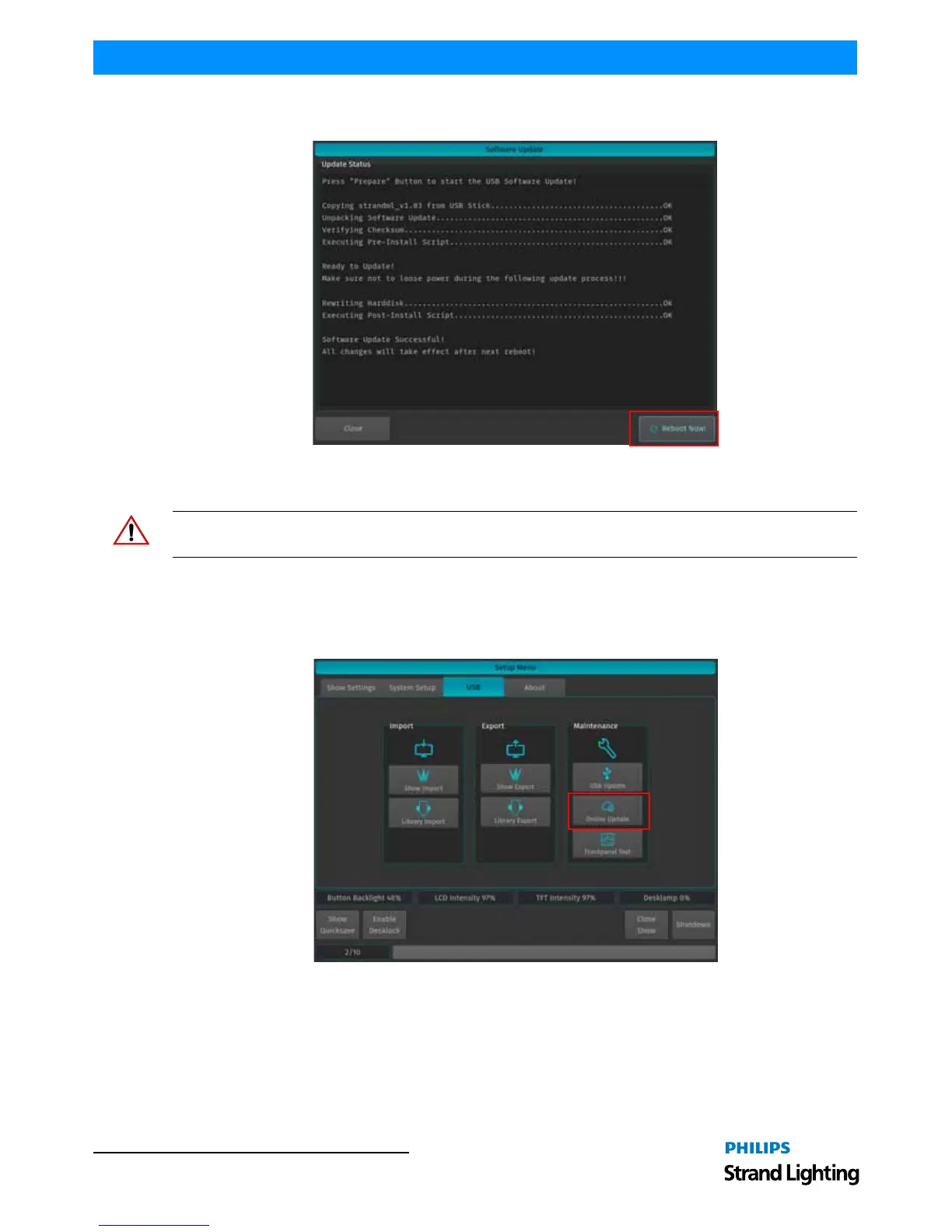 CAUTION: Before updating the console software, make sure you have made backups of all important show and