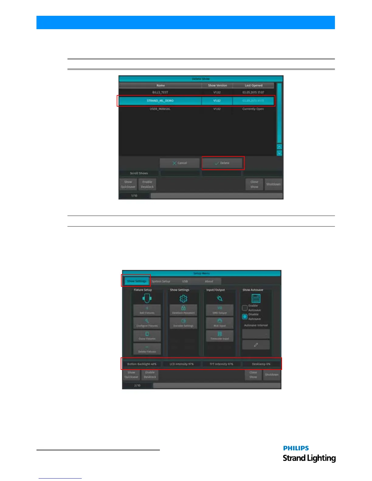 Note: You cannot delete a show that is currently loaded. To close a show, refer to "Closing a Show" on page 43.