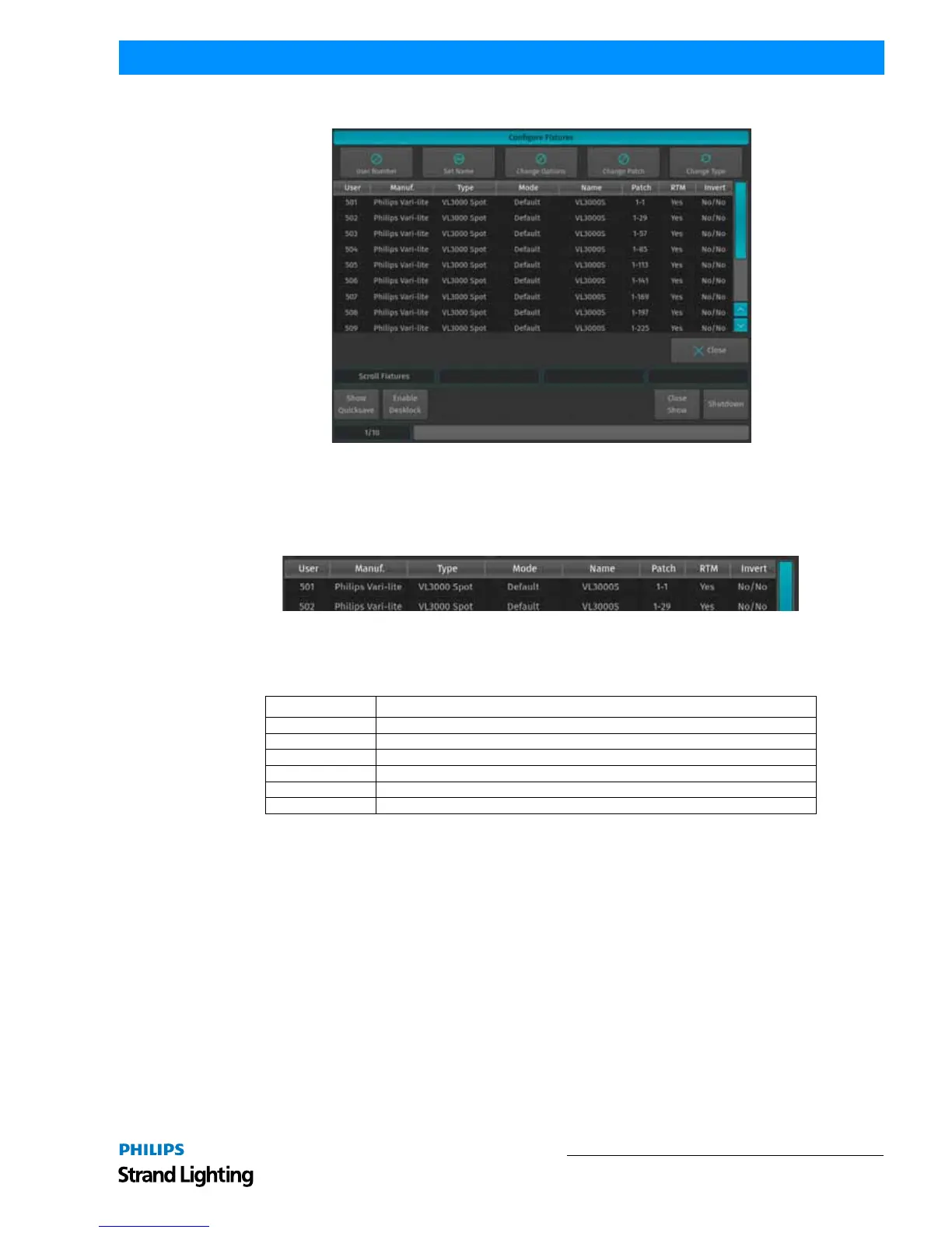 fixture selection (see "Selecting Fixtures" on page 63) or by selecting the rows of fixtures within the Configure