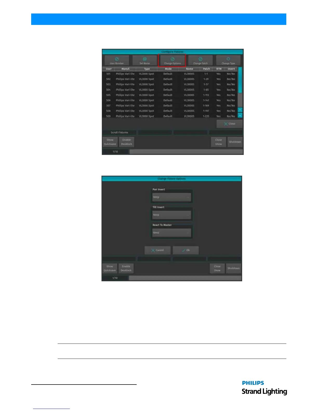 Figure 87: Configure Fixtures - Change Pan / Tilt Invert.