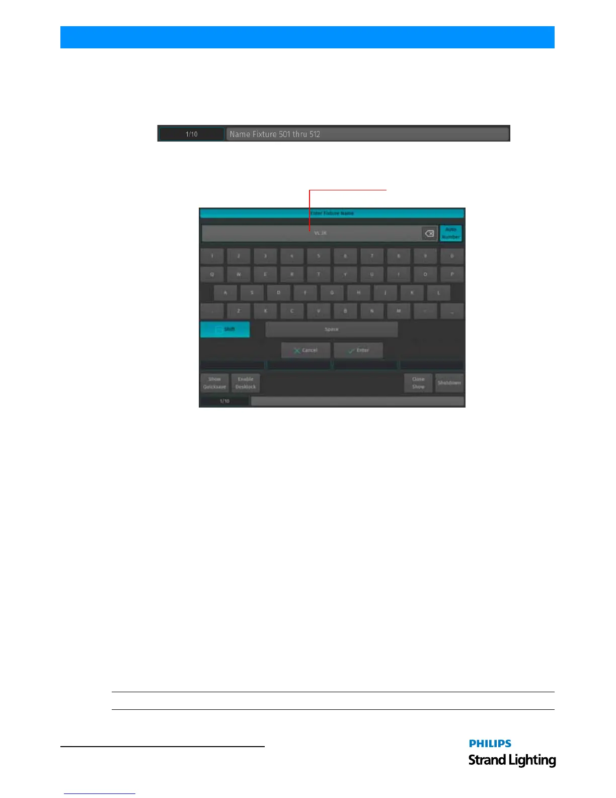 You may also use the Edit Fixture Window to rename a fixture. Please see "Assigning Names to Fixtures" on page 69