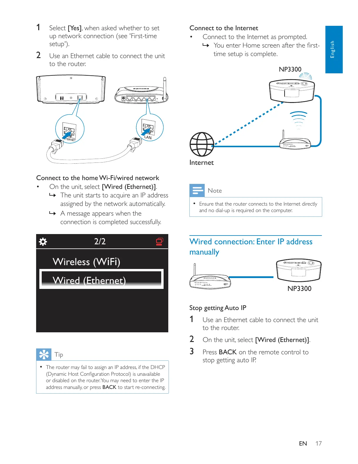 1 Use an Ethernet cable to connect the unit