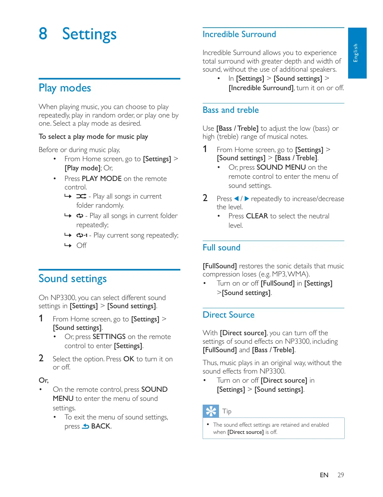 settings in [Settings] > [Sound settings].