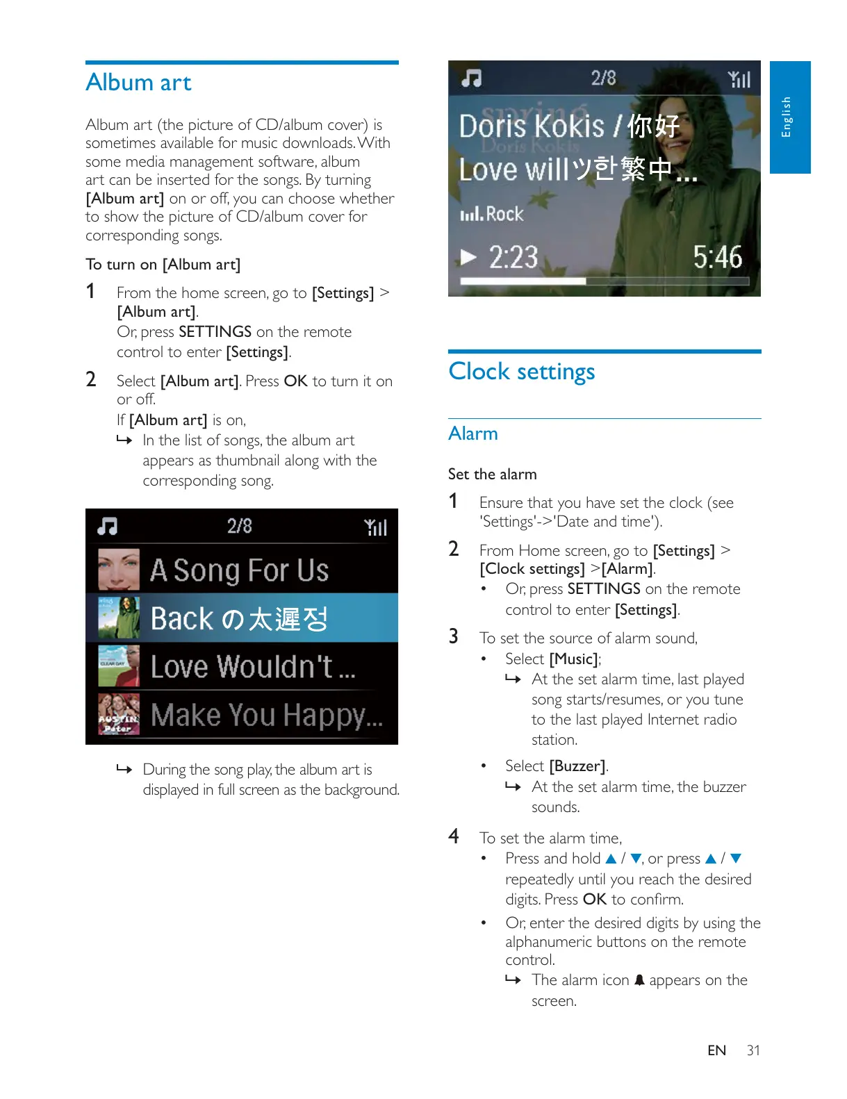 2 Select [Album art]. Press OK to turn it on