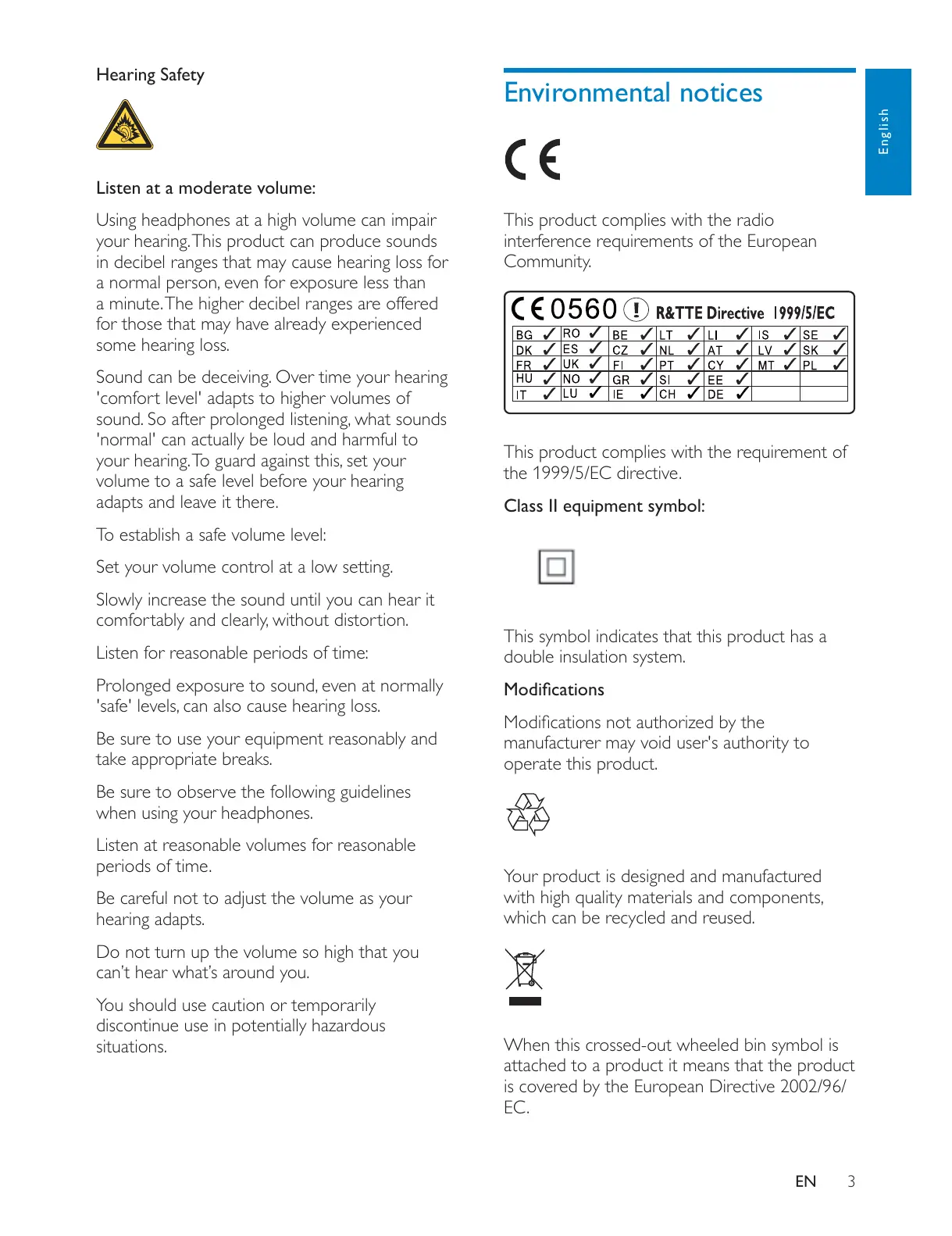 volume to a safe level before your hearing