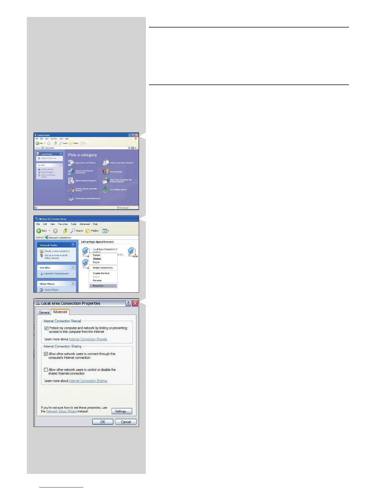 Enabling Internet Connection Sharing for Windows XP