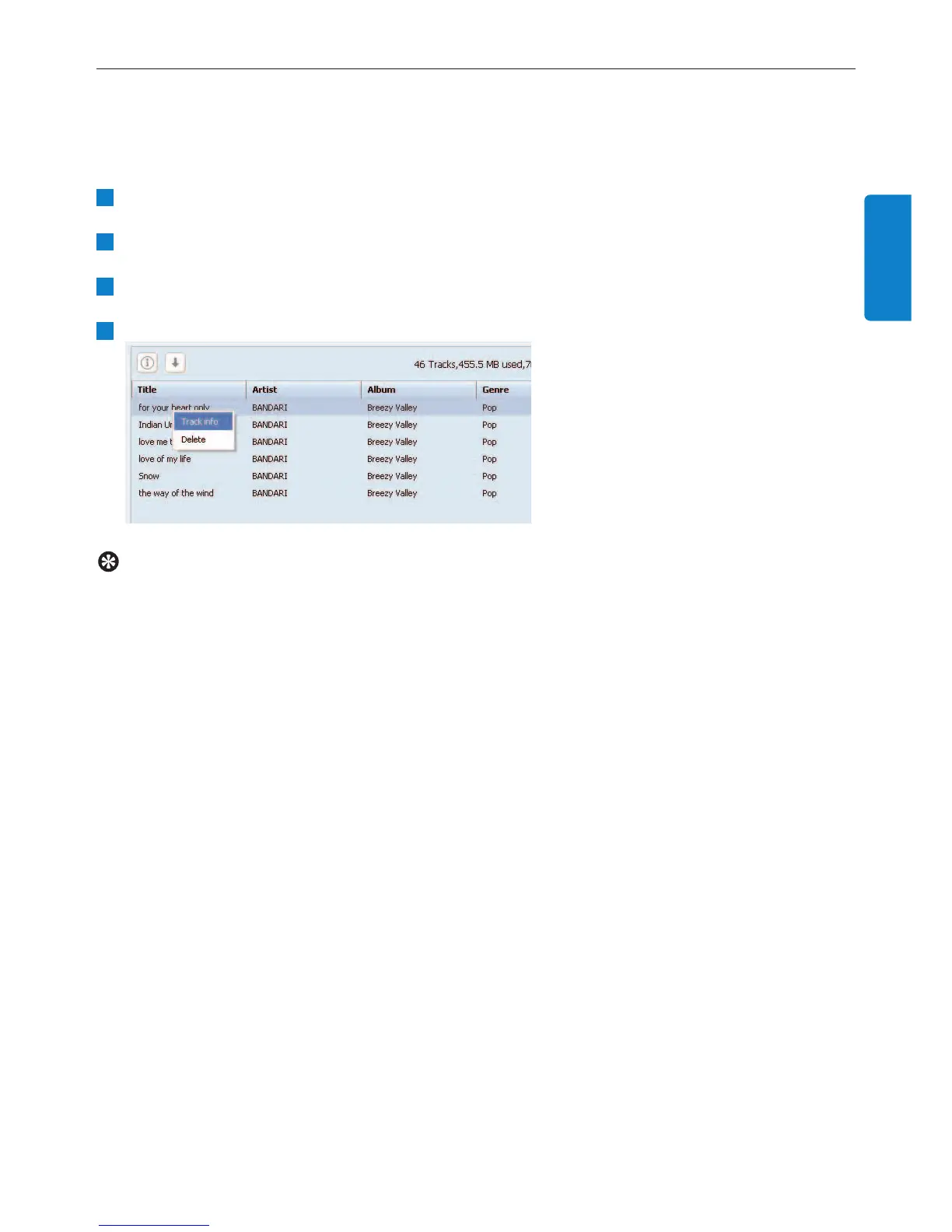 • Cliquez sur “Title” (“Titre”) ou “Artist” (“Artiste”) pour trier les fichiers par titre ou