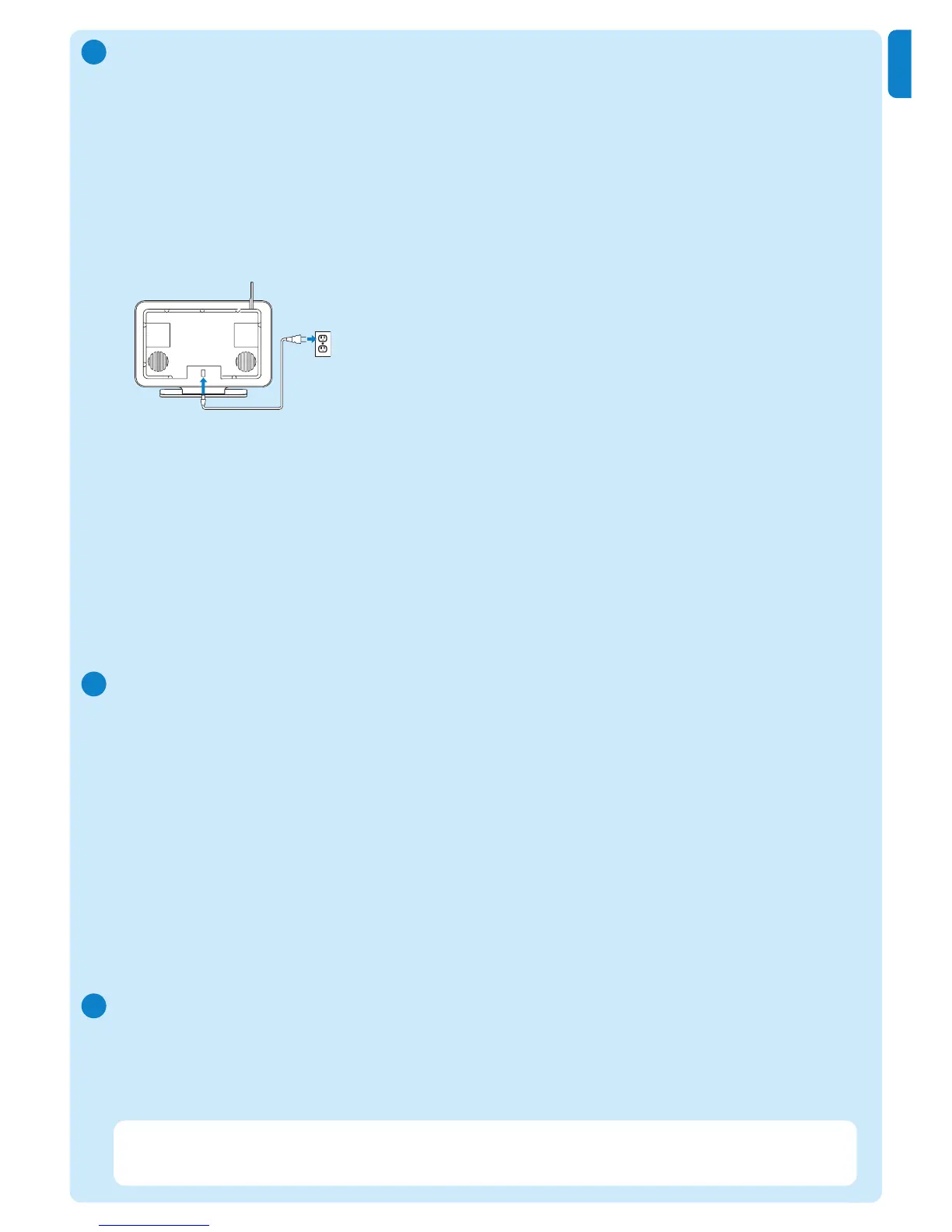2 Use the supplied power cables to connect first the Center, then the Station to the power supply.