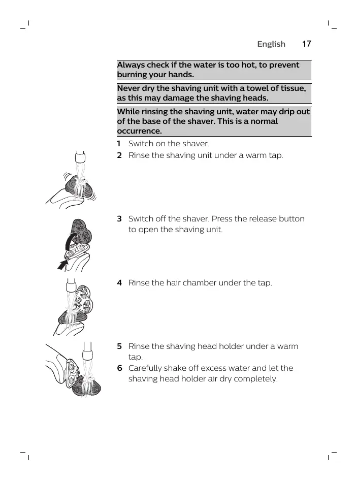 2 Rinse the shaving unit under a warm tap.