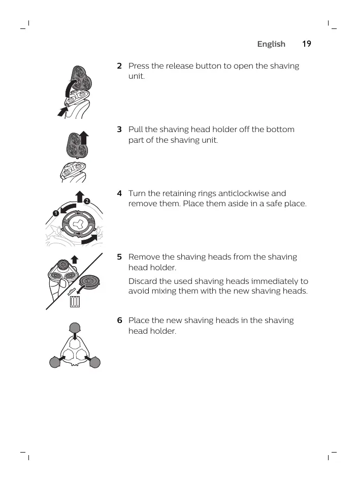 5 Remove the shaving heads from the shaving