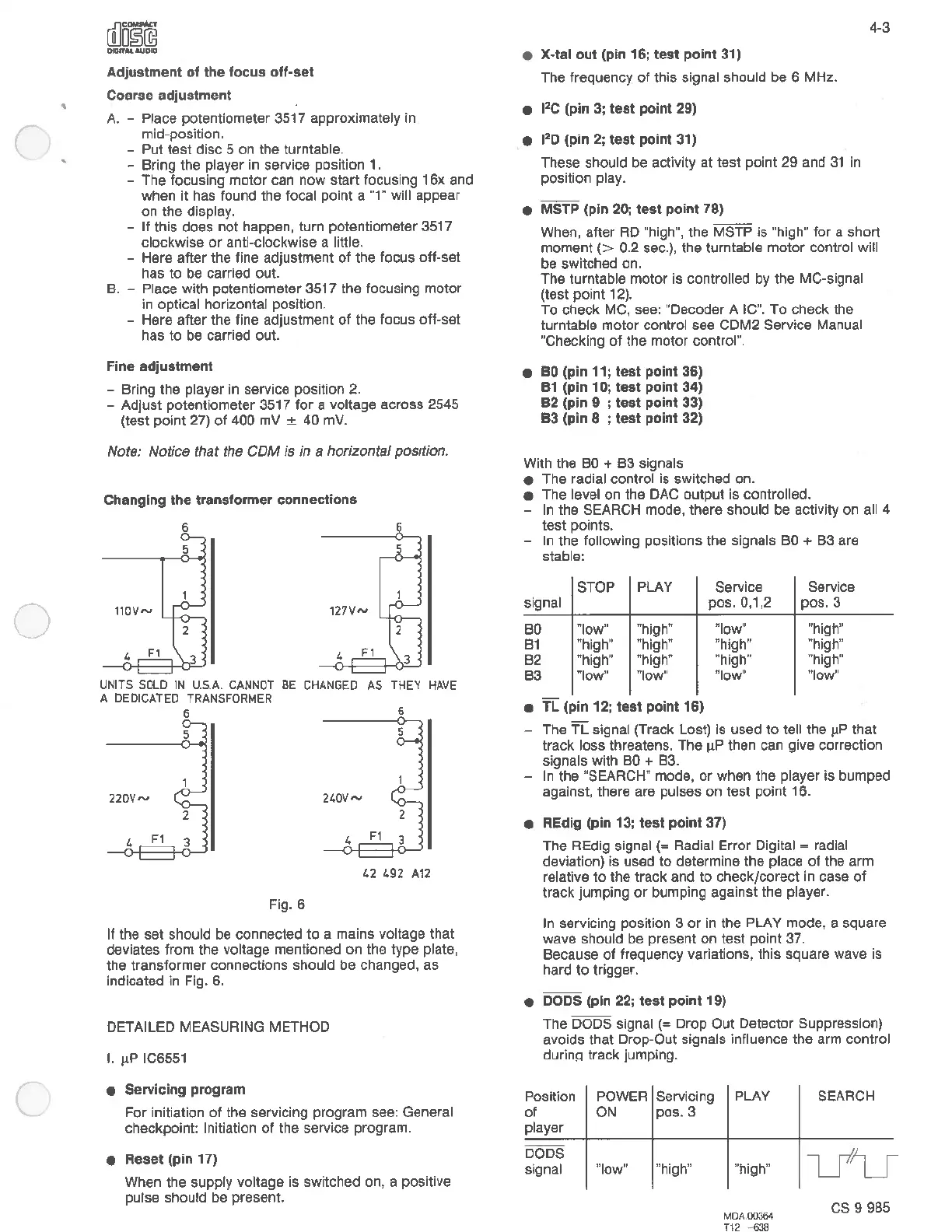 turntable motor control see CDM2 Service Manual
