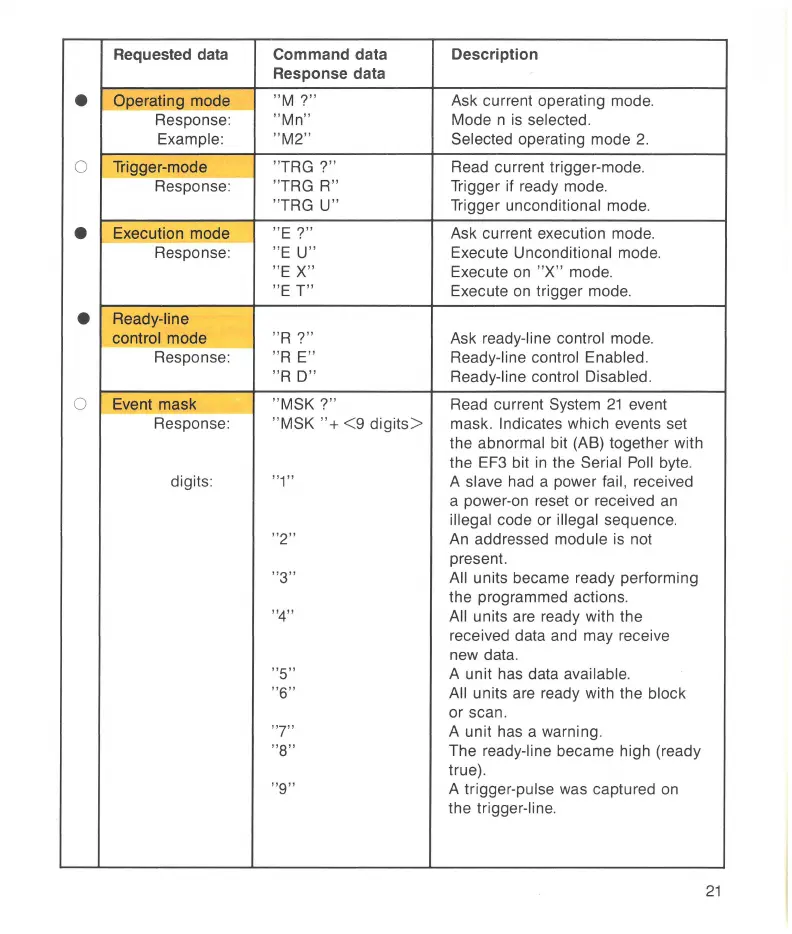 Requested data Command data Description
