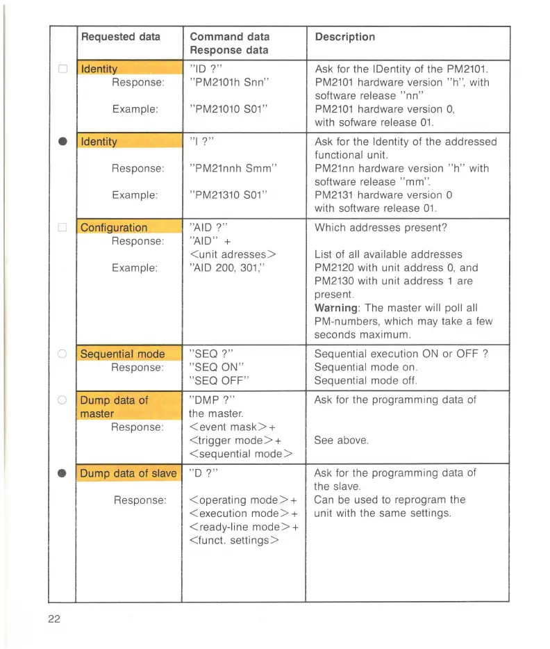 Requested data Command data Description