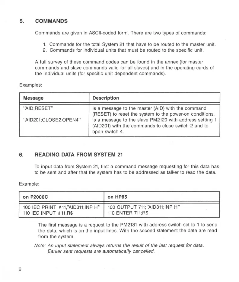 ASCII-coded form. There are two types of commands: