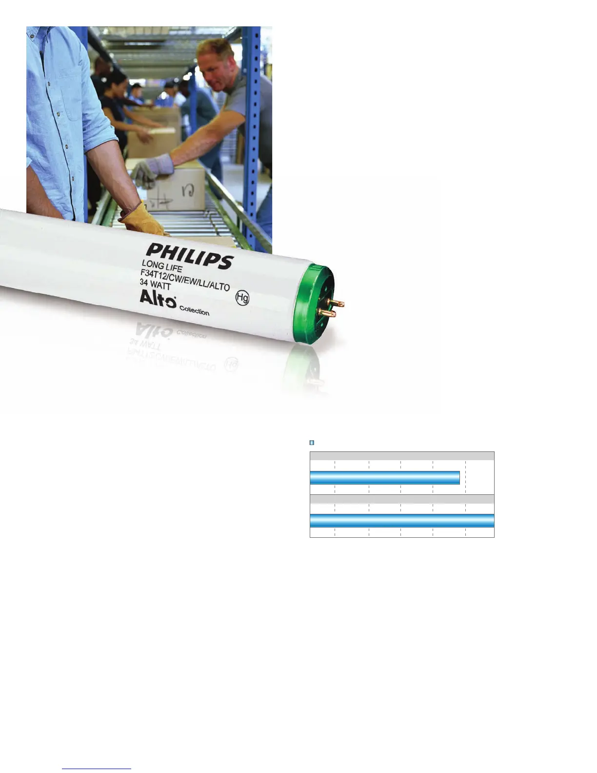 1) When compared to a Philips standard 4'T12 34W lamp with 20,000 hours rated average life
