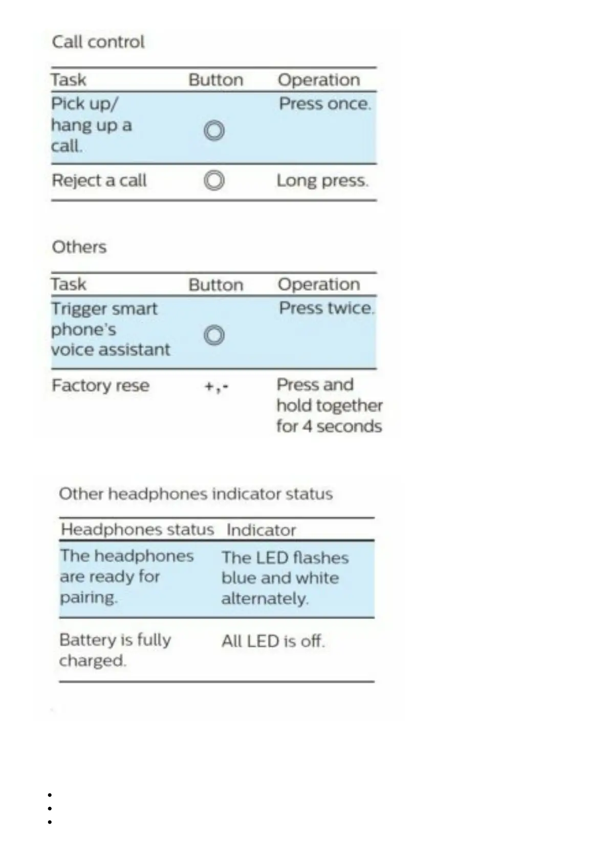 Philips TAA4205 - Headphones indicator status; Technical Data