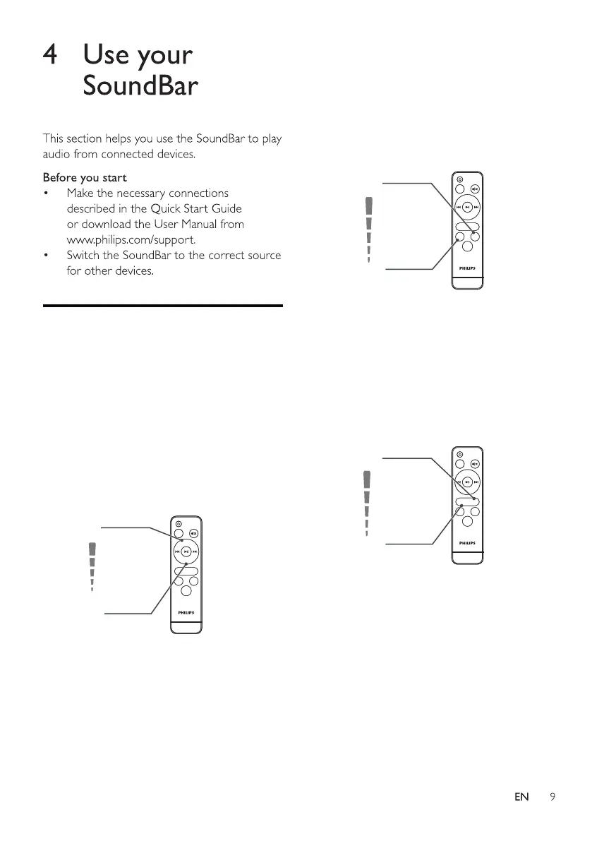 1 Press +/- on the soundbar or press