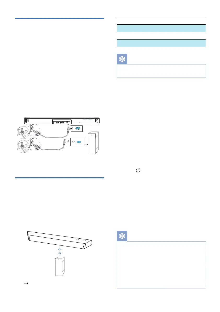 Plug the soundbar and the subwoofer