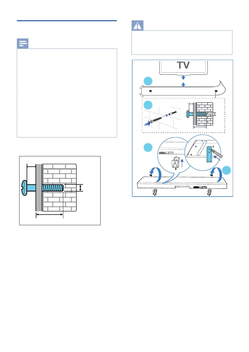 4 Hang the soundbar on the fastening