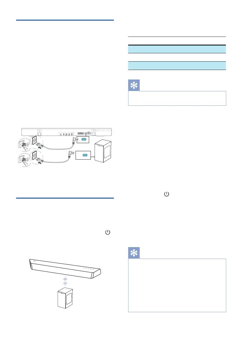 Plug the soundbar and the subwoofer